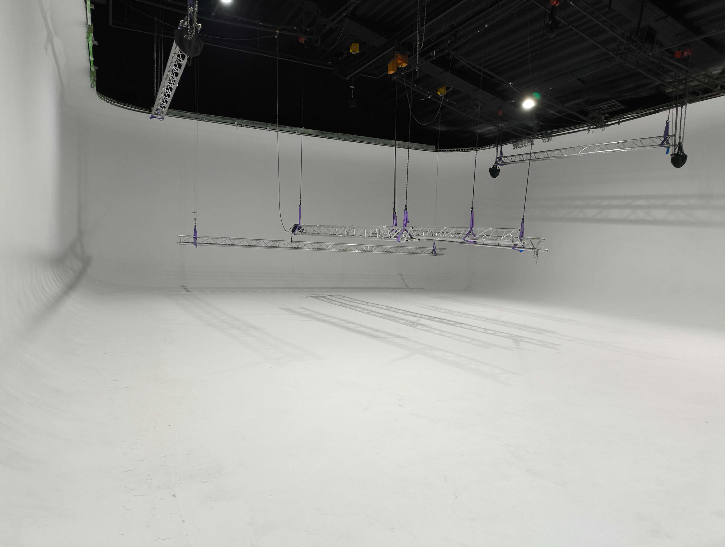 White cyclorama measuring 17mx15mx5.5m. Black & Green cyclorama is also available. Car Friendly Studio!